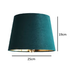 K Living Green Velvet and Gold Inner Modern Easy Fit Tapered Drum Lampshade - 25cm Diameter  This modern Green velvet fabric tapered drum lampshade brings a luxury feel to any...