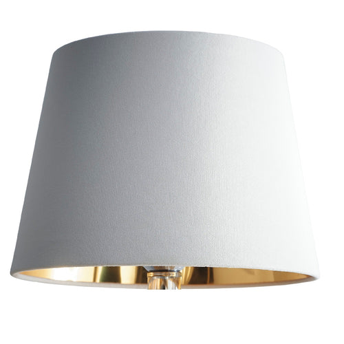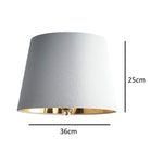 K Living Cream Velvet and Gold Inner Modern Easy Fit Tapered Drum Lampshade - 36cm Diameter  This modern Cream velvet fabric tapered drum lampshade brings a luxury feel to any...