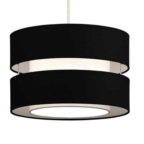K Living L30LAYERBLK/PEN Black Cotton Fabric Double Layer Retro Easy Fit Drum Lampshade - 30cm Diameter  This contemporary black fabric dual banded lampshade is not only stylish but also very...
