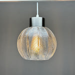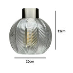 K Living LLEAFCLEAR/PEN Brushed Chrome & Clear Ribbed Glass Vintage Globe Easy Fit Pendant Shade - 20cm Diameter A Stunning Lampshade made from High Grade Clear Ribbed Glass, Topped with...