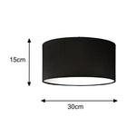 K Living L30LUCIABLK/PEN Black Cotton Modern Easy Fit Round Drum Lampshade with White Diffuser - 30cm Diameter