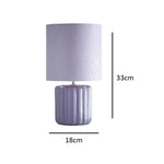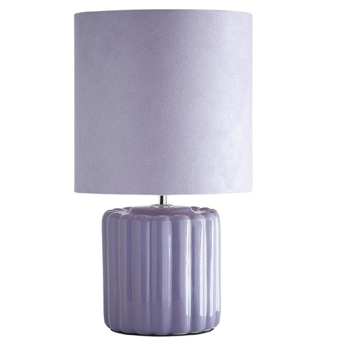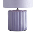K Living LZOELILAC/TLWS Lilac Ribbed Ceramic Vintage Table Lamp with Velvet Drum Shade - 33cm Height  A stunning vintage style table lamp with a blue ceramic vertical ribbed effect base...