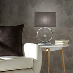K Living LLIZZYCHR/TLWS Polished Chrome & Crystal Modern Table Lamp with Grey Cotton Rectangular Drum Shade - 44cm Height  A stunning polished chrome base table lamp light with sparkling crystal...