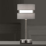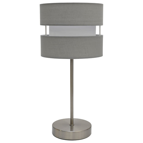 K Living LLAYERGRY/TLWS Satin Nickel Table Desk Lamp with Grey Layered Fabric Shade - 38cm Height  This stunning table lamp consists of a satin nickel round metal base and stem supporting a layered grey...