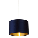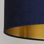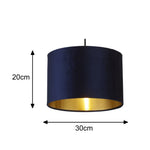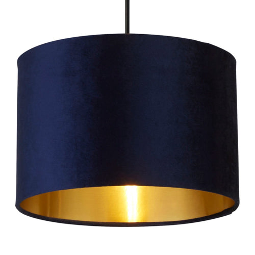 Lighting Collection HR00081 Navy Blue Velvet Vintage Easy Fit Drum Shade with Gold Inner - 30cm Diameter  A stunning round drum lampshade made from high grade navy blue velvet fabric...