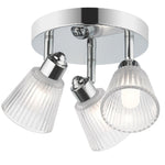 Magnalux GAT03CH Polished Chrome & Ribbed Glass Vintage 3 Lamp Bathroom Ceiling Light  IP44 -  20.5cm Diameter   Transform your bathroom with the Gatsby 3 Light Bathroom Ceiling Light in polished chrome, combining...