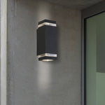 Searchlight 61101BK Matt Black Outdoor Modern Rectangular Up & Down Wall Light IP44 - 23.5cm Height  The Searchlight 61101BK is an outdoor matt black rectangular shaped wall light with 2...