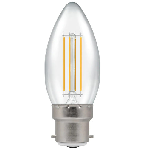 Megaman 710509E LED 4.2W (40W) Dimmable Candle Lamp BC B22 Clear Filament 470lm 2700k Warm White - Large Bayonet Cap Featuring a retro heritage design, the Megaman classic filament vintage LED Candle combine the familiar shapes of incandescent light...