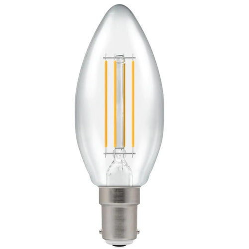 Megaman 711371E LED 4.2W (40W) Dimmable Candle Lamp SBC B15 Clear Filament 470lm 2700k Warm White - Small Bayonet Cap Featuring a retro heritage design, the Megaman classic filament vintage LED Candle combine the familiar shapes of incandescent light...