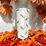 Minster 0845 White and Black Dragonfly Print Ceramic Hexagonal Umbrella Stand - 44cm Height  This elegant ceramic umbrella stand boasts a vintage white ceramic complete with a dragonfly pattern. Its...