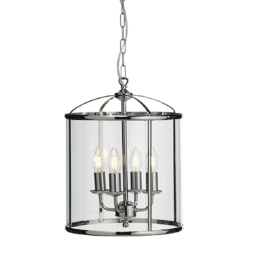 OAKS 351/4 CH Fern Polished Chrome 4 Lamp Lantern Pendant with Glass Panels – 41cm Height  The 351/4 CH 4 Lamp Lantern Pendant light is suspended from a 53cm chain...