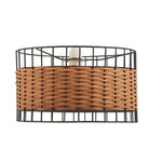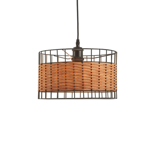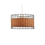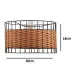 Oaks 4030 NE SM Black Metal and Rattan Cage Modern Drum Easy Fit Non Electric Pendant - 30cm Diameter (Shade Only)  Bring natural texture and modern character to your space...