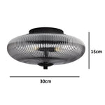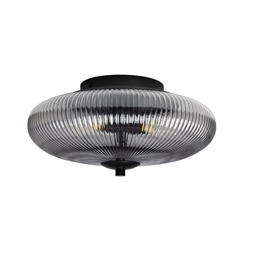 Oaks 4055 F BK Black & Smoked Ribbed Glass Vintage Domed Flush Ceiling Light - 30cm Diameter  Elevate your interior with this modern flush mount ceiling light, featuring a striking...