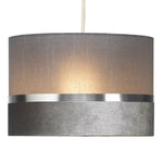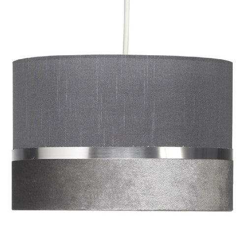 Oaks 452/12 SG Soft Grey Velvet & Fabric Drum Pendant Shade with Silver Metallic Band - 30cm Diameter  A stunning velvet & fabric drum pendant lampshade with a mix of vintage and modern...