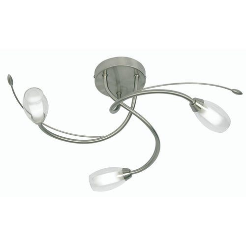 OAKS 6203/3 AC Pandora Antique Chrome 3 Lamp Swirl Semi Flush with Glass Shades - 17cm Height The 6203/3 AB Antique Chrome Pandora Semi Flush Light features three curved arms...