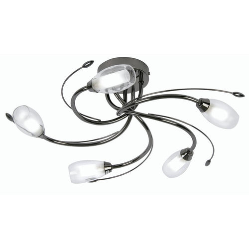 OAKS 6203/5 MB Pandora Mirror Black 5 Lamp Swirl Semi Flush with Glass Shades  The 6203/5 MB Mirro Black Pandora Semi Flush Light features five curved arms each with a...