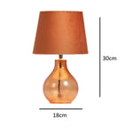 Oaks TL 7220 OR Orange Dimpled Glass Modern Table Lamp with Burnt Orange Velvet Shade - 30cm Height  A stunning modern style table lamp with a satsuma orange glass hammered...