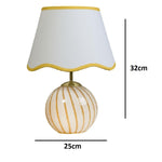 Searchlight 99140YL Yellow and White Stripe Glass Vintage Table lamp with White Scalloped Shade - 32cm Height  Brighten your home with this charming yellow and white ceramic table lamp, designed...