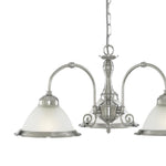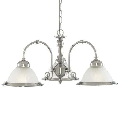 Searchlight 1043-3 Satin Chrome & Acid Ribbed Glass Vintage Dome 3 Lamp Pendant Light - 62cm Diameter  A stunning satin chrome (brushed chrome) metalwork pendant ceiling light with frosted acid ribbed glass dome shades. The round...