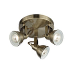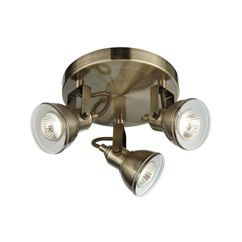 Searchlight 1543AB Focus Antique Brass 3 Lamp Vintage Round Plate Spot Light This Focus Antique Brass 3 Light Ceiling Spotlight with Round Plate provides an attractive, central source of light...