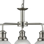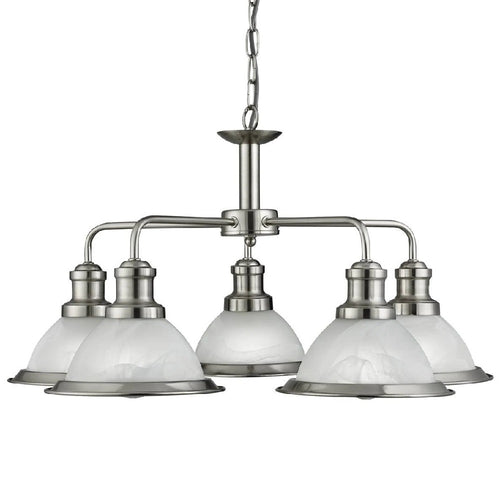 Searchlight 1595-5SS Satin Chrome & Alabaster Acid Glass Vintage Dome 5 Lamp Pendant Light – 63cm Diameter  The Searchlight 1595-5SS Satin Chrome 5 Lamp Pendant Light is suspended by linked...