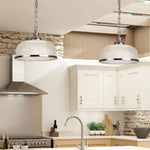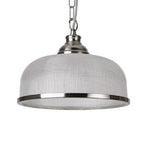 Searchlight 1682SS Satin Chrome & Holophane Glass Vintage Dome Pendant Ceiling Light - 27cm Diameter  Add a touch of elegance to your space with this stunning satin chrome pendant ceiling...