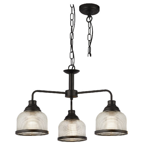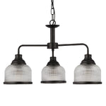 Searchlight 1683-3BK Matt Black & Holophane Glass Vintage Dome 3 Lamp Pendant Light - 56cm Diameter  The Searchlight 1683-3BK Matt Black & Holophane Glass Vintage Dome 3 Lamp Pendant Light combines...