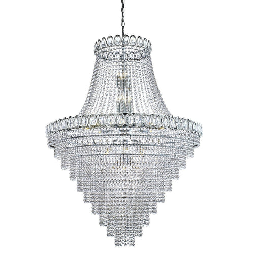 Searchlight 1711-102CC Polished Chrome & Crystal Bead Traditional 28 Lamp Chandelier Light - 100cm Diameter  A truly spectacular chandelier pendant ceiling light with polished chrome metalwork adorned with crystal strings and beads....