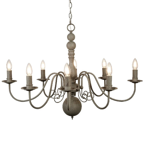 Searchlight 2268-8GY Grey Textured Metal Vintage Shabby Chic 8 Lamp Pendant Light - 63cm Diameter  A stunning textured grey metalwork pendant ceiling light with decorative arms and 8 lampholders. The fixing...