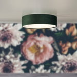 Searchlight 23298-2GR Green Velvet & Opal Diffuser Vintage Round Flush Drum Light - 38cm Diameter  The Searchlight 23298-2GR Green Velvet & Opal Diffuser Round Flush Ceiling Light combines luxury and style...