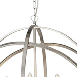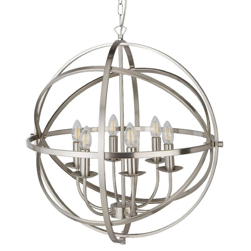Searchlight 2476-6SS Satin Chrome Metal Banded Sphere Vintage 6 Lamp Pendant Light - 60cm Diameter  A stunning satin brushed chrome metalwork pendant ceiling light with metal bands encasing 6 lampholders. The plain...
