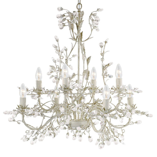 Searchlight 2498-8CR Cream Gold & Crystal Metal Vintage Shabby Chic 8 Lamp Pendant Light - 74cm Diameter  A beautiful cream & gold metalwork large pendant ceiling light with crystal glass faceted beads....