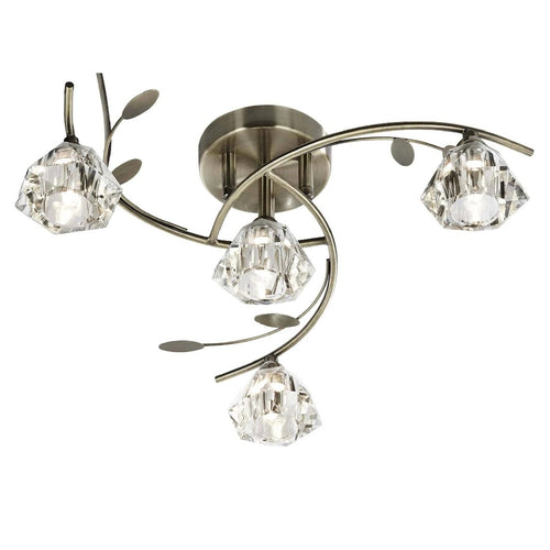 Searchlight 2634-4AB Antique Brass & Crystal Shades Vintage 4 Lamp Semi Flush Light - 48cm Diameter  A stunning antique brass decorative semi flush ceiling light with heavyweight cut glass crystal shades....