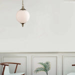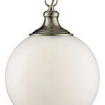 Searchlight 3051AB Antique Brass & White Frosted Globe Glass Vintage Pendant Light - 25cm Diameter  A stunning antique brass metalwork pendant ceiling light with white frosted glass globe orb shade....