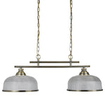Searchlight 3592-2AB Antique Brass & Holophane Glass Vintage Dome 2 Lamp Bar Pendant - 75cm Width  The Searchlight 3592-2AB Antique Brass & Holophane Glass Vintage Dome 2 Lamp Bar Pendant is a...