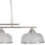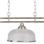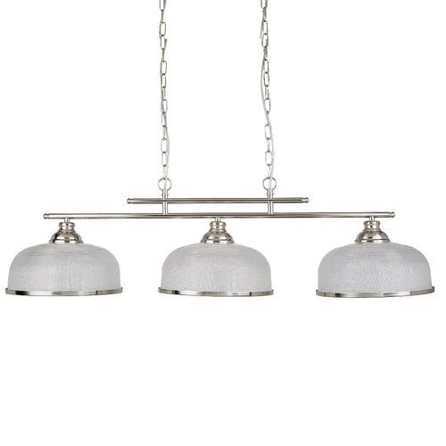 Searchlight 3593-3SS Satin Chrome & Holophane Glass Vintage Dome 3 Lamp Bar Pendant - 99cm Width  The Searchlight 3593-3SS Satin Chrome is perfectly suited for kitchens, dining areas, or bars. This pendant...