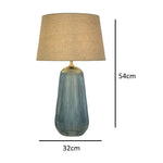 Searchlight 44652AZ Blue Ribbed Glass Modern Table Lamp With Natural Linen Shade - 53cm Height  A stunning blue ribbed cylinder glass column base table lamp light with natural fabric tapered...