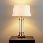 Searchlight 5141AB Antique Brass & Clear Cylinder Glass Column Vintage Table Lamp with Cream Shade – 63cm Height  Bring timeless elegance to your home with this antique brass and cylinder...