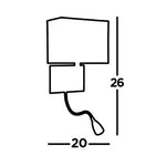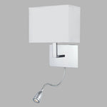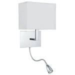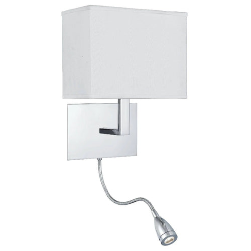 Searchlight 6519CC Polished Chrome & LED Reading Flexi Arm Modern Wall Light with White Rectangle Shade - 26cm Height  This 6519CC modern wall light features a sleek polished chrome backplate,...