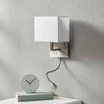 Searchlight 6519SS Satin Chrome & LED Reading Flexi Arm Modern Wall Light with White Rectangle Shade - 26cm Height  This 6519SS modern wall light features a sleek satin chrome backplate,...