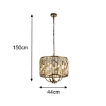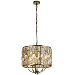 Searchlight 6585-5AB Antique Brass & Champagne Crystal Glass Vintage 5 Lamp Drum Pendant Light - 44cm Diameter  This stunning 5-lamp drum pendant is suspended by chains features curving arms that extend from the...