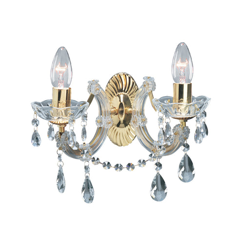 Searchlight 699-2 Marie Therese Polished Brass 2 Lamp Crystal Wall Light – 32cm Diameter  The Searchlight 699-2 is a striking 2 lamp wall light finished in polished brass, designed to...