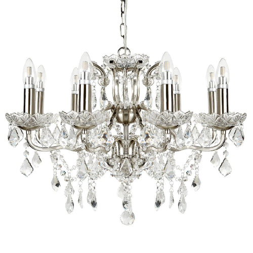 Searchlight 8738-8SS Satin Silver & Crystal Bead Traditional 8 Lamp Chandelier Light - 70cm Diameter  The Searchlight 8738-8AB Satin Silver 8 lamp pendant light adds timeless charm to any space...