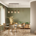Searchlight 88910-4MO Mocha Brown & Amber Glass Cylinder Vintage 3 Lamp Cluster Pendant Light - 142cm Length  The Searchlight 88910-4MO is a vintage inspired Mocha Brown 4-lamp pendant with Amber...
