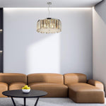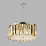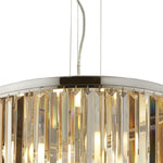 Searchlight 9835-5CC Polished Chrome & Mixed Colour Coffin Crystal Vintage 5 Lamp Pendant Light - 60cm Diameter  The Searchlight 9835-5CC Polished Chrome 5 Lamp Drum Pendant light is suspended from a round...