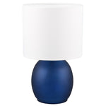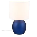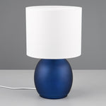 Trio 517900112 Blue Glass Vintage Retro Table Lamp with White Shade - 29cm Height  A stunning vintage retro blue glass base indoor table lamp desk light with white fabric drum lampshade. Manufactured from high grade materials...