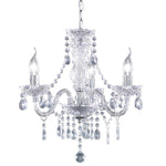 Trio R11073000 Chrome & Clear Acrylic Crystal Traditional 3 Lamp Pendant Chandelier  The Trio R11073000 is a stunning indoor 3 lamp chandelier pendant ceiling light finished in polished chrome with clear crystal...