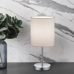 Trio R50491001 Chrome Modern Stem Slimline Table Lamp with White Drum Shade - 28cm Height A simplistic modern metal slimline stem indoor table lamp desk light finished in chrome with a white fabric drum lampshade. Manufactured from high grade metal...