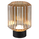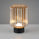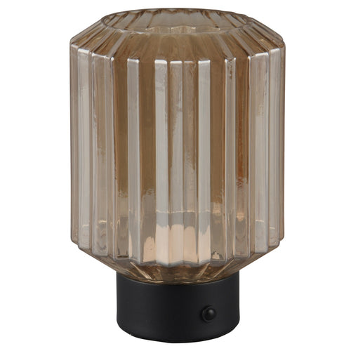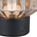 Trio R57761113 LED Matt Black & Amber Ripple Glass USB Rechargeable Touch Retro Table Lamp - 19cm Height  A stunning vintage retro indoor table lamp desk light with amber ripple glass shade and matt black base. A matt black...