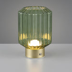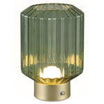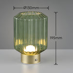 Trio R57761115 LED Matt Brass & Green Ripple Glass USB Rechargeable Touch Retro Table Lamp - 19cm Height  A stunning vintage retro indoor table lamp desk light with green ripple glass shade and matt brass base. A matt brass base...